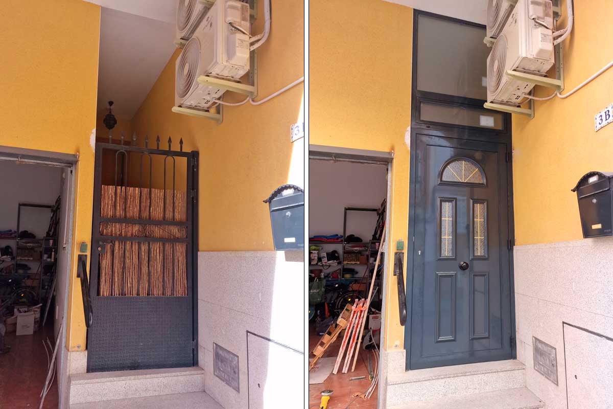 Esta cancela la instalamos para aislar la puerta principal de la vivienda y evitar el frío. Y además embellece muchísimo más que la anterior puerta....